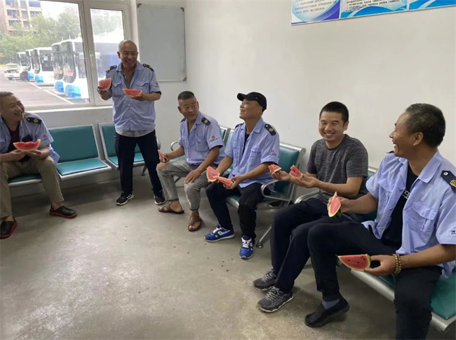 沈蘇公司各車隊(duì)管理人員為堅(jiān)守在高溫一線的職工送去清涼的西瓜。駕駛員們紛紛表示,這些西瓜不僅解了暑,也甜了心,感動(dòng)之余也讓大家更有干勁,他們將積極克服高溫挑戰(zhàn),更好地保障市民安全出行。