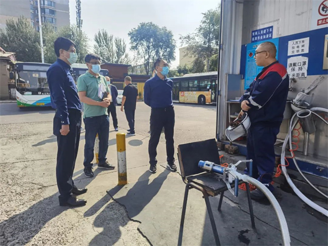 在通利公司場(chǎng)區(qū)院內(nèi),段九州副總經(jīng)理檢查了場(chǎng)區(qū)院內(nèi)公交車輛的安全設(shè)施,車輛充電設(shè)施,第三方加氣站周邊情況,場(chǎng)區(qū)內(nèi)疫情防控舉措及實(shí)施情況。