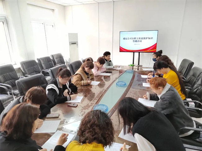 為慶?!叭恕眹H婦女節(jié),進(jìn)一步維護(hù)女職工合法權(quán)益,不斷增強(qiáng)廣大女職工知法、懂法、守法并依法維護(hù)自身權(quán)益的意識和能力,通運公司工會在3月7日舉辦女職工權(quán)益保護(hù)答題活動。