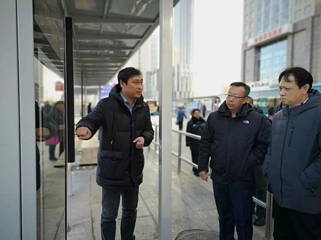 2019年1月28日,副市長(zhǎng)閻秉哲同志在市交通運(yùn)輸局局長(zhǎng)楊樹(shù),沈陽(yáng)市交通運(yùn)輸事務(wù)服務(wù)與行政執(zhí)法中心主任王衛(wèi)東,客運(yùn)集團(tuán)董事長(zhǎng)徐健、副總經(jīng)理周宇航的陪同下,對(duì)沈陽(yáng)北站南廣場(chǎng)公交樞紐站進(jìn)行了視察。