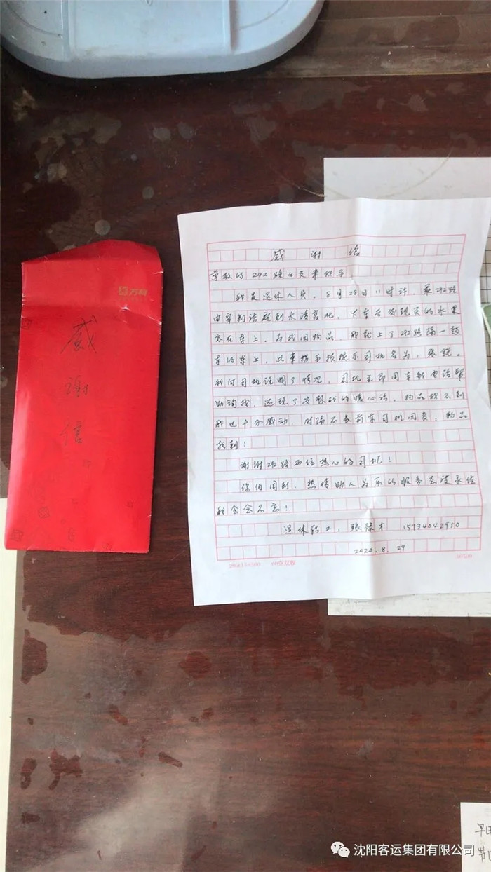 深受感動(dòng)的老人第二天一大早就帶著一封感謝信來到了292車隊(duì),對(duì)駕駛員張銳在工作中的熱情和責(zé)任心表示贊揚(yáng)。