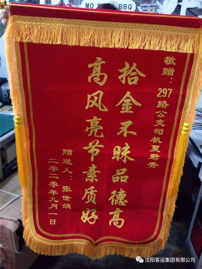 過了一會(huì),張女士來到了站務(wù)室,她回憶到自己乘坐297路公交車,下車的時(shí)候發(fā)現(xiàn)手機(jī)不見了,于是她求助路人給自己的手機(jī)撥打電話,最后得知手機(jī)掉落在剛乘坐的公交車上并被駕駛員撿到,張女士對(duì)高健隊(duì)長和駕駛員夏君秀表示萬分感謝,第二天早晨還送來了錦旗表達(dá)自己的謝意。